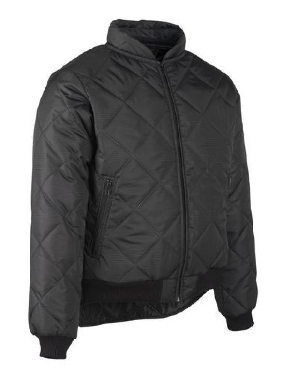 Hoogfrequent gelast polyester met gewatteerd polyester ter isolatie. Licht gevormde kraag met tricot aan de binnenkant, sluit goed aan rond de nek en beschermd tegen kou. Deelbare rits. Voorzakken met rits. Verlengde rug. Tricot aan de onderkant en bij de pols.