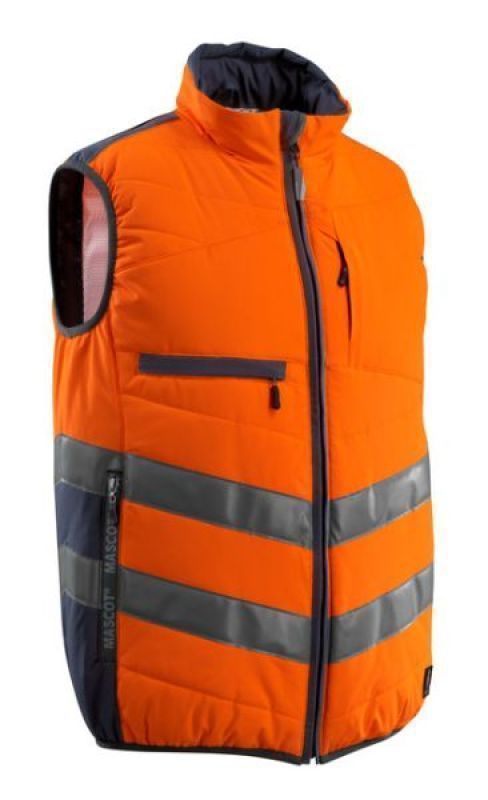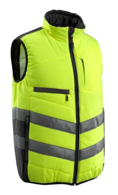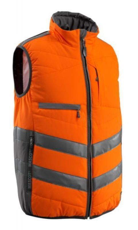 Fluorescerend, met schuine reflectie. Tweekleurig. Ademend, winddicht en waterafstotend. Gewatteerde polyestervoering. Sluiting met rits en inwendige windvanger. Hoge kraag. Binnenzak met ritssluiting, speciaal ontworpen voor mobiele telefoon en headsetkabel, met gat en lussen om de kabel op zijn plaats houden. Borstzakken met rits. D-ring. Voorzakken met rits. Certificering: Hi-Vis groep C. Gecertificeerd volgens EN ISO 20471 - kl. 1.