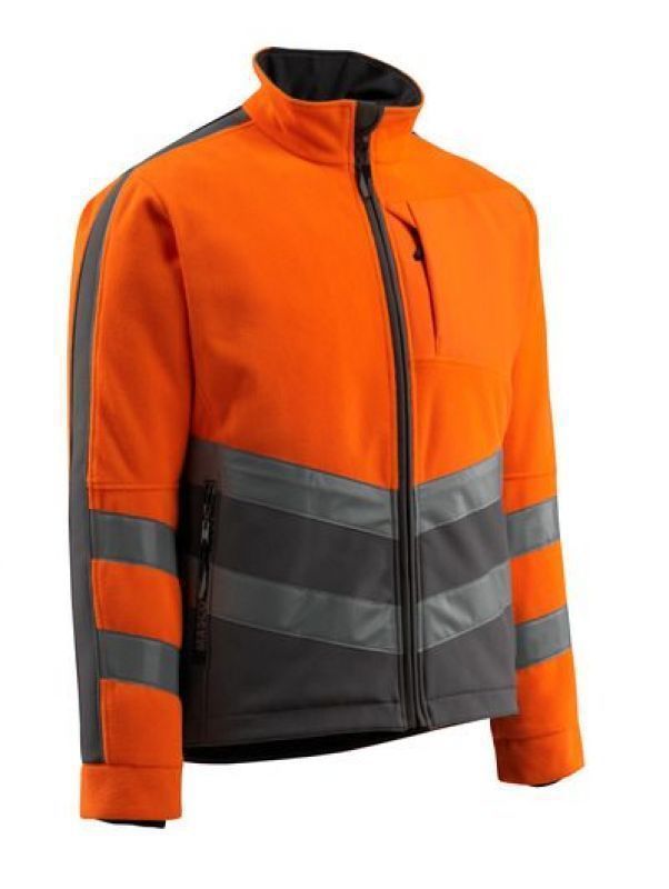 Fluorescerend, met schuine reflectie. Tweekleurig. Ademend, winddicht en waterafstotend. Gewatteerd. Sluiting met rits en inwendige windvanger. Hoge kraag. Binnenzak met ritssluiting, speciaal ontworpen voor mobiele telefoon en headsetkabel, met gat en lussen om de kabel op zijn plaats houden. Verlengde rug. Borstzak met rits. Voorzakken met rits. Pennenzakje. Voorgevormde mouwen. Tricot (verborgen in windvanger) bij de pols. Rits onderaan de rug voor bedrukking/borduursel. Certificering: Hi-Vis groep A. Gecertificeerd volgens EN ISO 20471 - kl. 2.