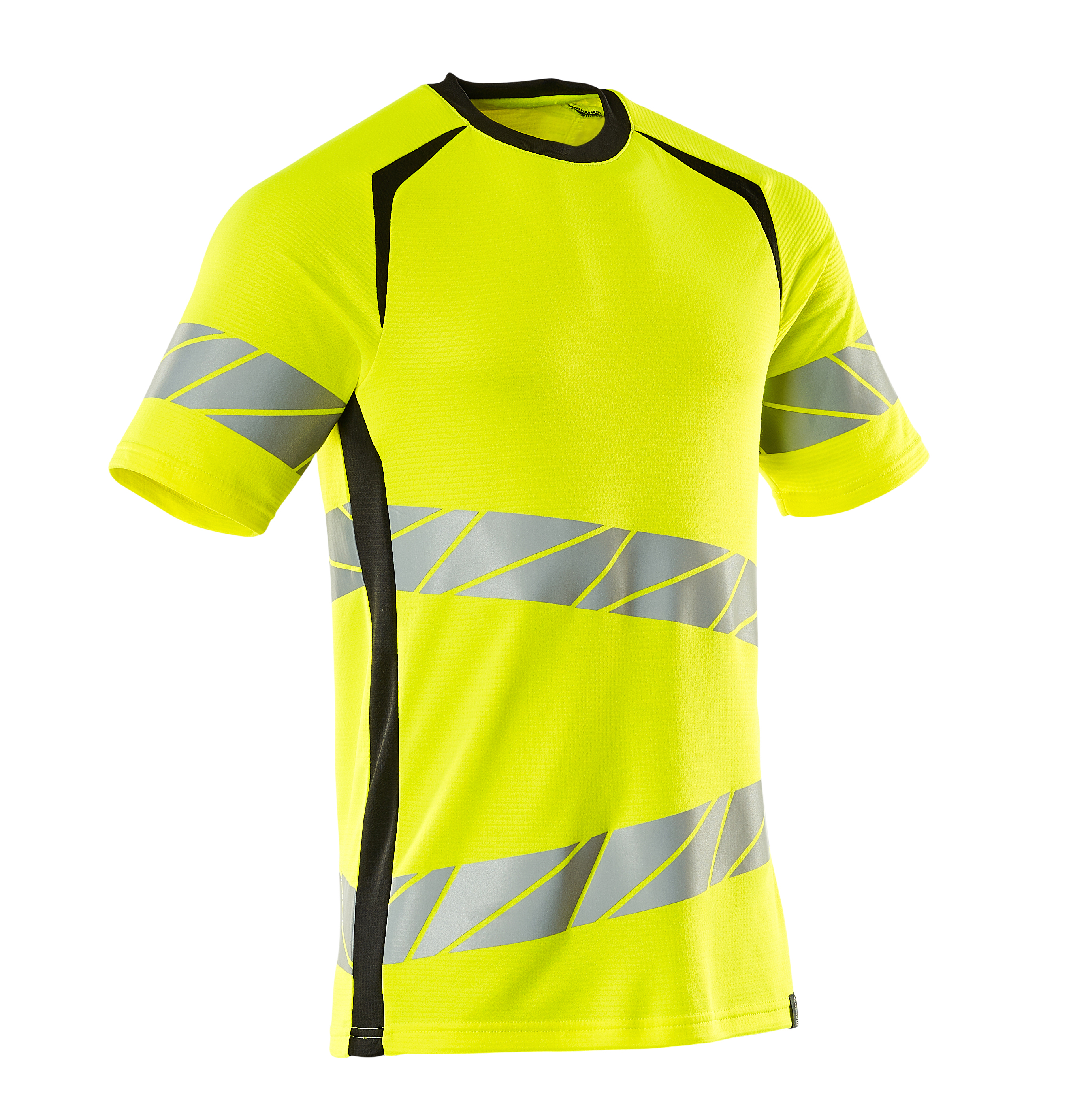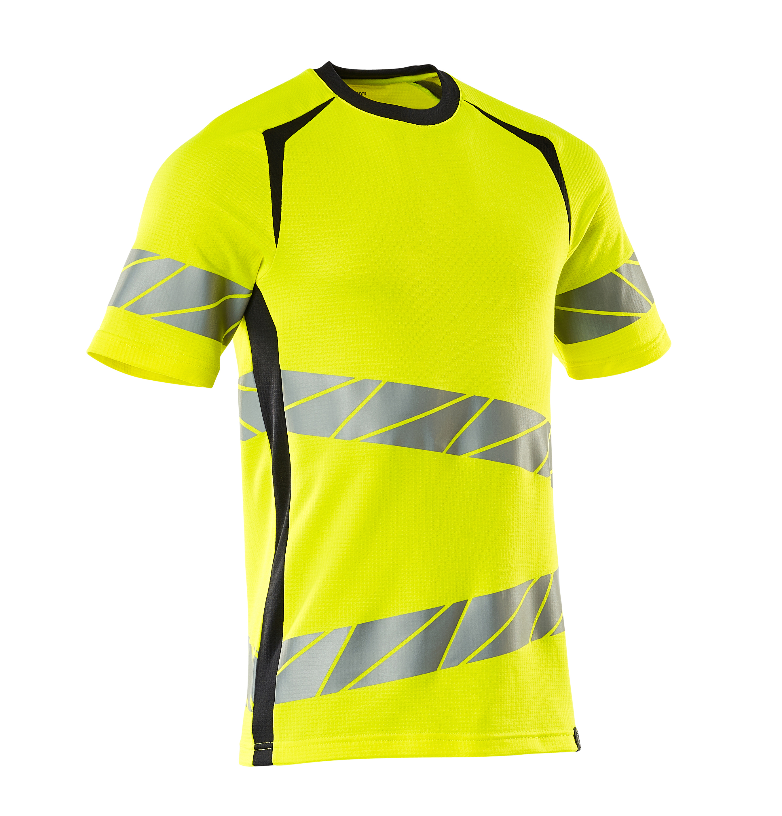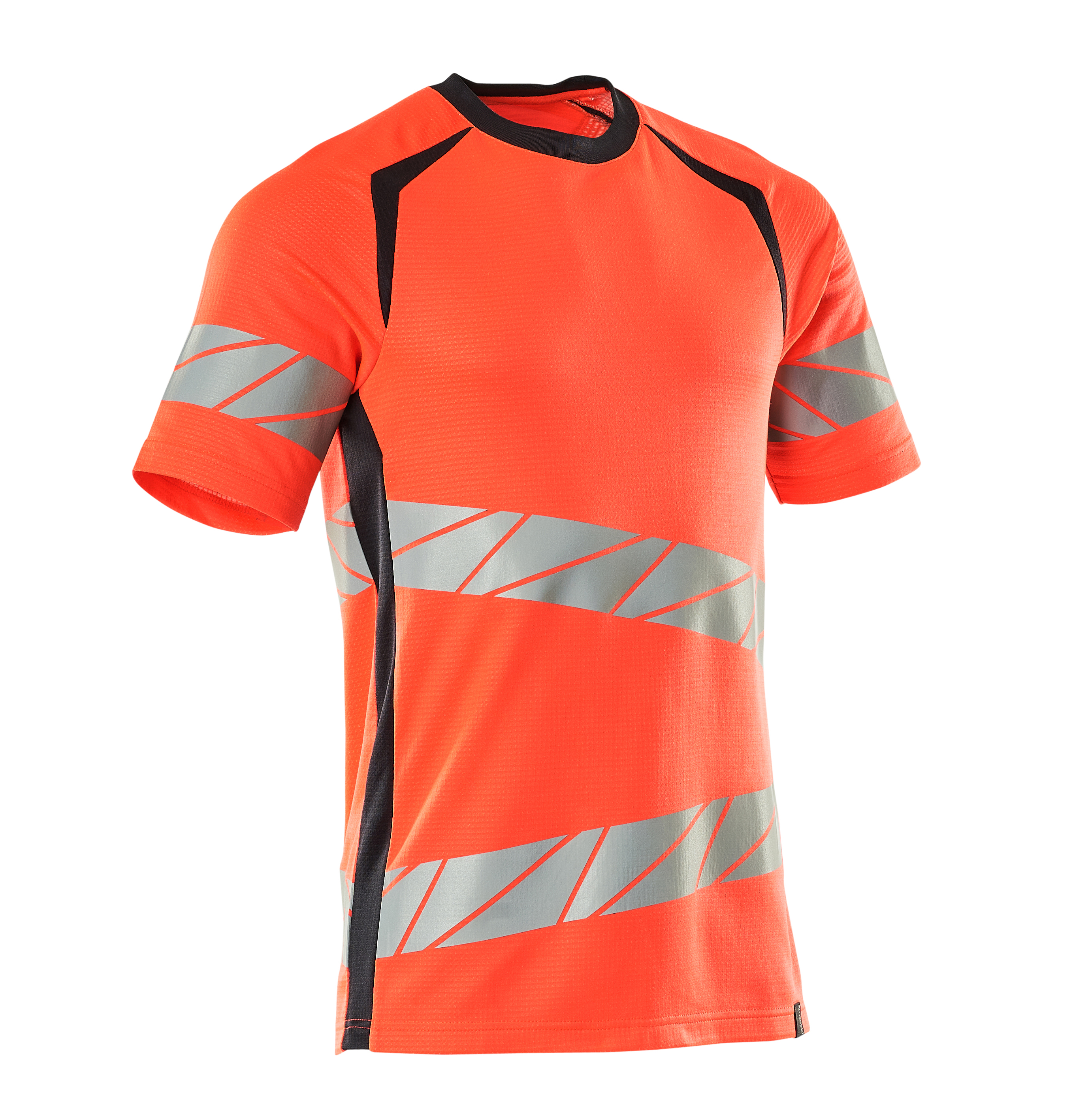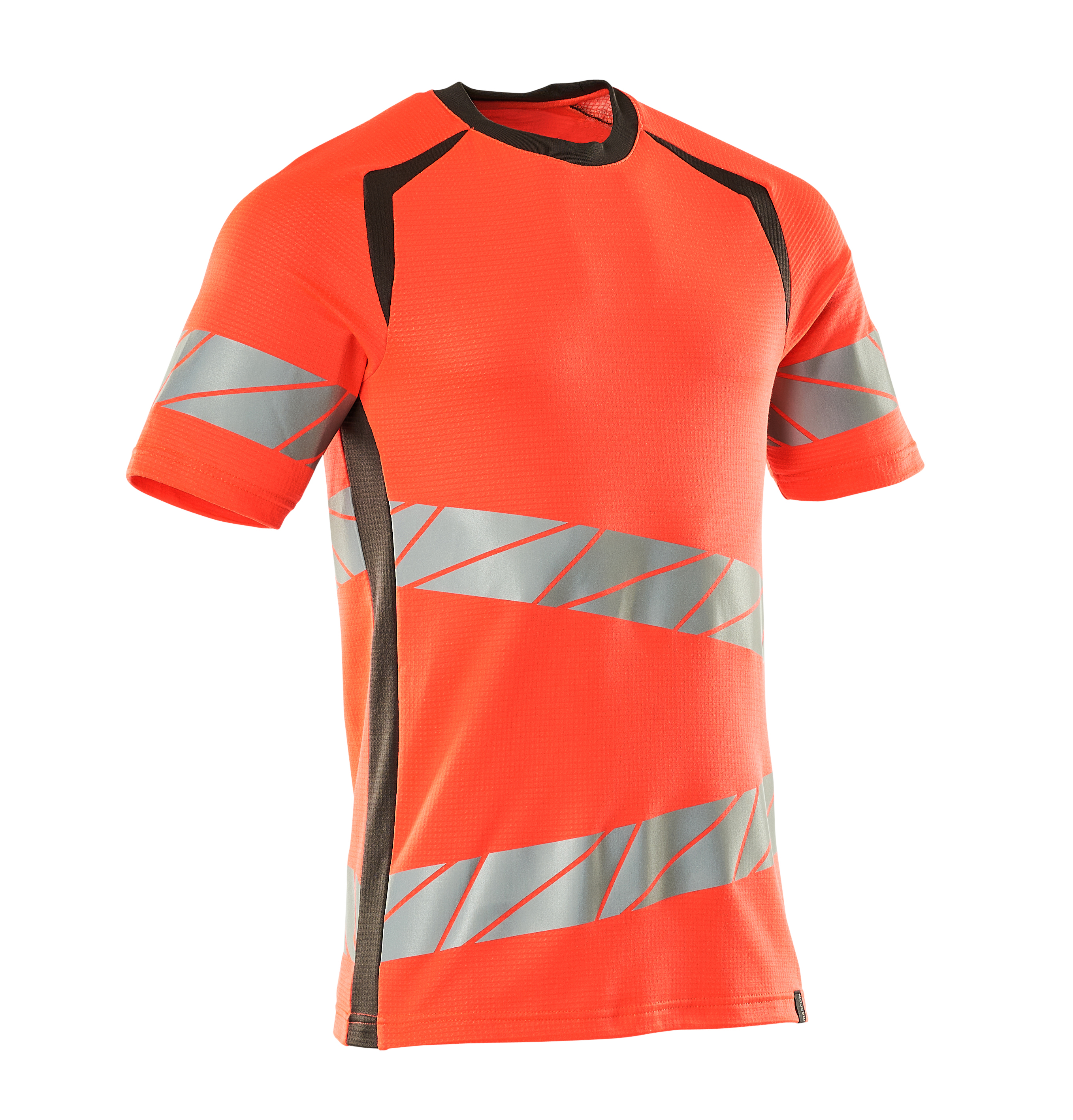Premium. Fluorescerend, met schuine reflectie. Tweekleurig. Moderne pasvorm. Comfortabel katoen aan de binnenkant en duurzaam polyester met stretch aan de buitenkant. Vierkant jacquardpatroon. Elastische reflectieband. Ronde hals. Tricot aan de hals. Verstevigde boord. Certificering: Oeko-Tex® Standard 100; EN ISO 20471 - kl. 2; Hi-Vis groep B; EN 13758-2 UPF 40+