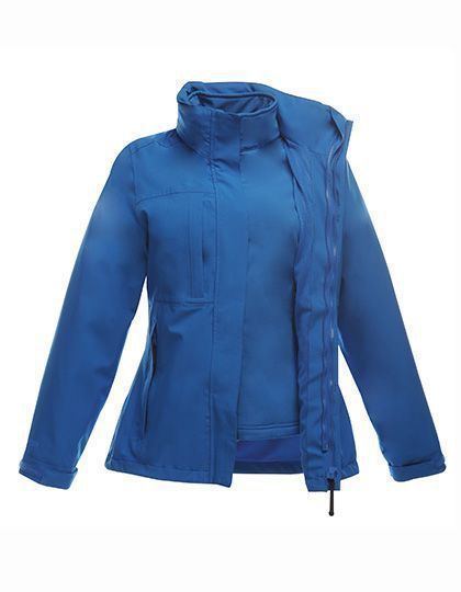 Damesmodel met slanke pasvorm, waterdichte en ademende Isotex stretchstof, voering deels mesh, deels polyester taffeta voering, getapete naden, uitritsbare Softshell binnenvoering, verborgen capuchon met versteloptie, 2 zijzakken met rits en een borstzak met rits, stormflap met klittenband, verstelbare manchetten, met een trekkoord verstelbare zoom