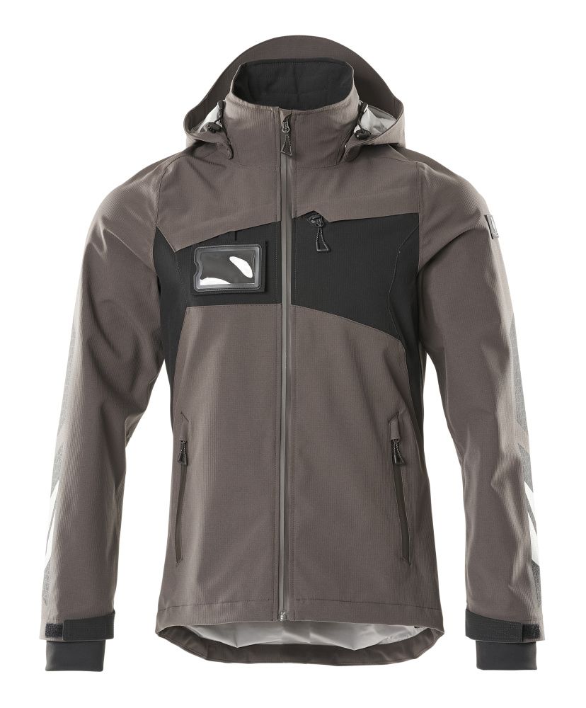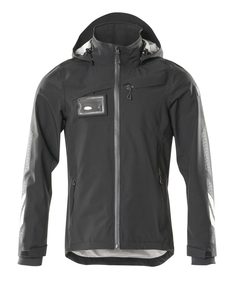 Lichtgewicht materiaal. Winddicht en waterafstotend. Getapede naden. Afneembare gevoerde capuchon met verstelbaar elastisch rijgsnoer. Sluiting met rits en inwendige windvanger. Binnenzak met rits. Afneembare ID-kaarthouder. Borstzak met rits. Voorzakken met rits. Elastisch rijgsnoer, aan de onderkant verstelbaar. Tricot (verborgen in windvanger) bij de pols. Met opdruk en reflectoren.