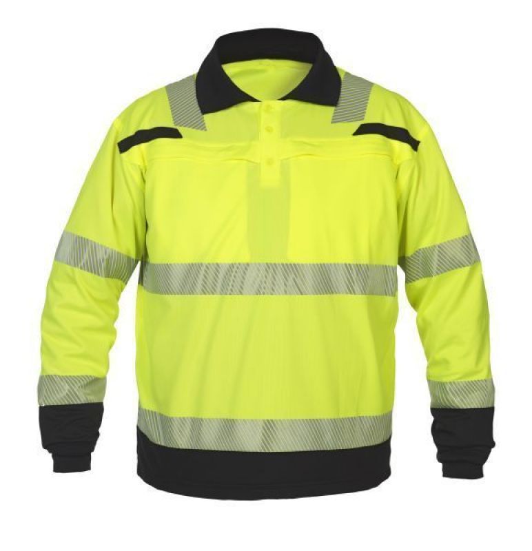 Lange mouw, borstzak, tricotkraag, vochtregulerend Certificering: EN ISO 20471 klasse 2