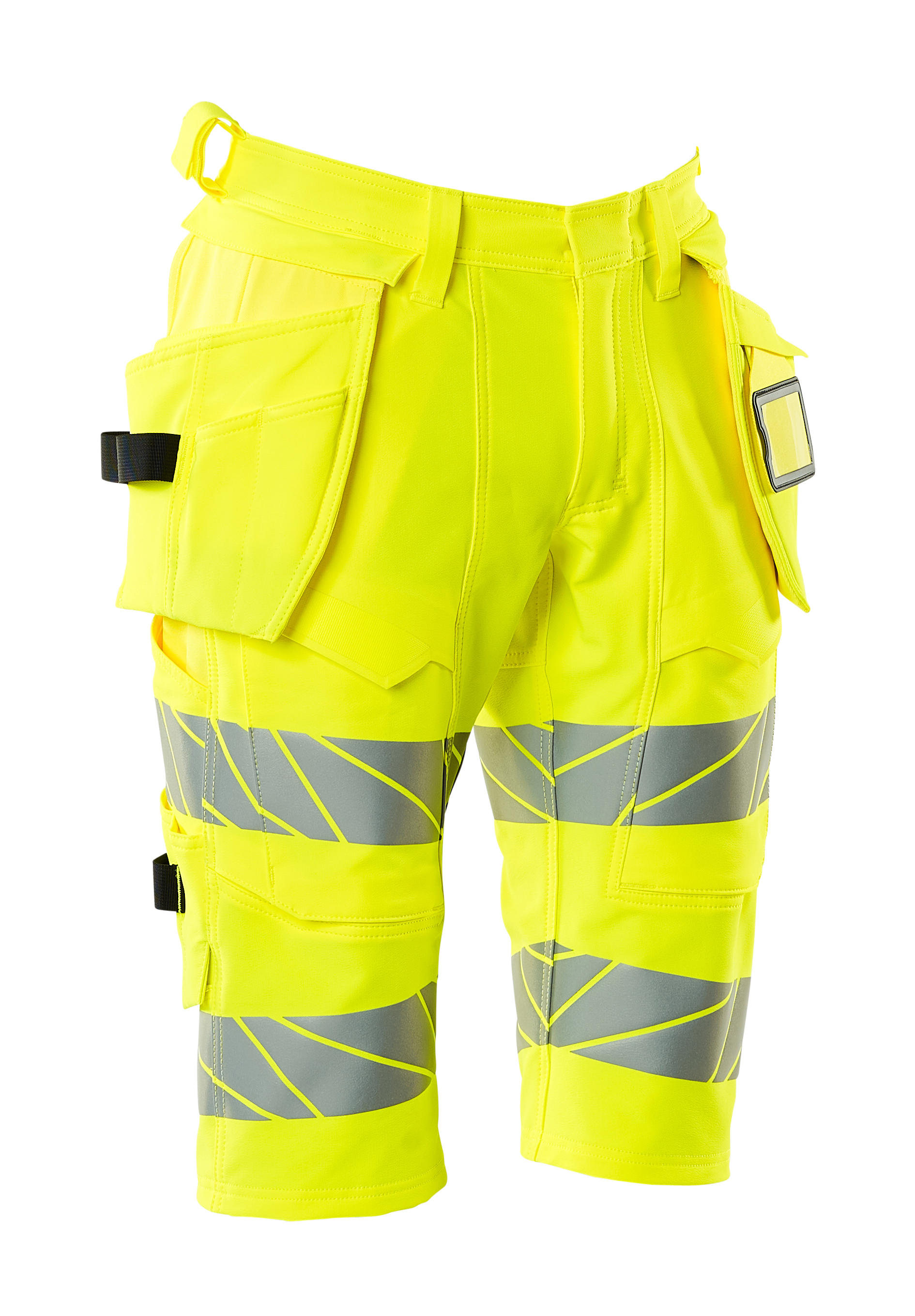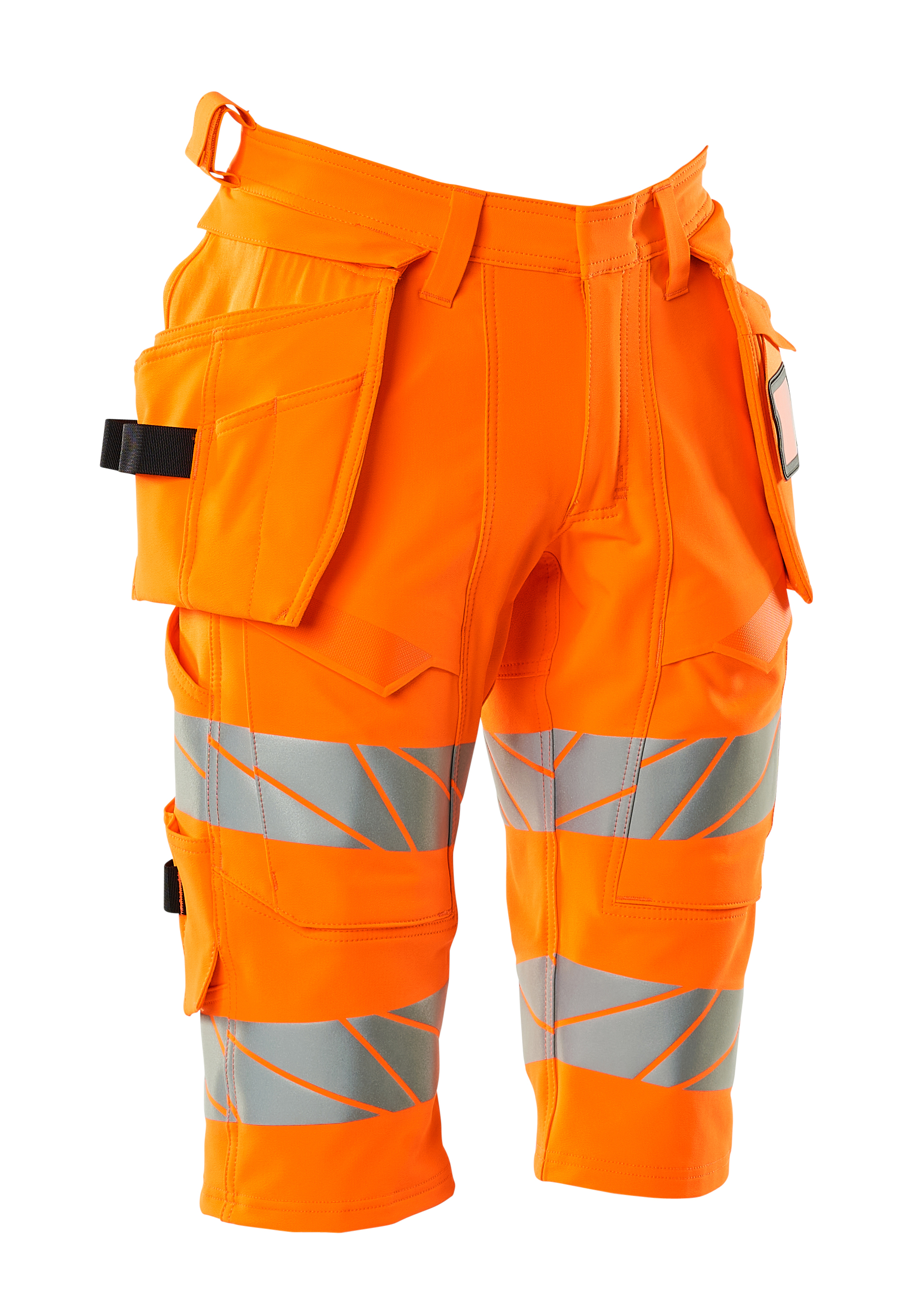 Fluorescerend, met reflecties. Met een waterafstotende finish. Ultieme stretchstof met laag gewicht en goede slijtvastheid. Tweevoudig gestikt bij de broekspijpen en het kruis. Verborgen knoopsluiting. Afneembare spijkerzakken. Drukknoopsluiting aan de binnenkant van de spijkerzak. Spijkerzak met gevoerde telefoonzak, magnetische sluiting en geïntegreerde ID-kaarthouder. Afneembare ID-kaarthouder. Spijkerzakken versterkt met Kevlar® en CORDURA®. Riemlussen. Gereedschapslus aan beide zijden van de tailleband. Gulp met rits. Voorzakken. Achterzakken met versterking en kleppen. Verborgen hamerlus aan beide kanten. Knoop (afneembaar) om messenhouder te bevestigen. Duimstokzak met Kevlar®-verstevigingen. Zakken met klep aan de voorkant van de bovenbenen. Dijbeenzak met gevoerde telefoonzak en magnetische sluiting. Certificering: Oeko-Tex® Standard 100; EN ISO 20471 - kl. 1 (C44-C46); EN ISO 20471 - kl. 2 (C47-C68); Hi-Vis groep X